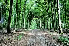 The Grünewald (Luxembourgish: Gréngewald) is a forest in central Luxembourg, most of which is owned by the national government. Grünewald stretches through the communes of Niederanven, Steinsel, and Walferdange; the centre of the forest is situated 6 kilometres (3.7 mi) north-east of central Luxembourg City. As a result of its proximity to Luxembourg's capital city, it is a popular destination for tourism, leisure, and hospitality. Within the Grünewald are the sources of the Black Ernz and the White Ernz.