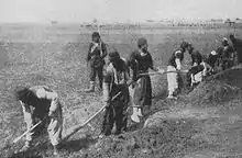 Mclaren remained in the village as local Kurds continued to engage in massacre throughout the countryside.[60] This was followed by the mass arrests of Armenian men aged ten years and above on June 22.[61][62] On June 25, the ongoing massacres were further assisted by Cevdet Bey who arrived in Bitlis from Van accompanied with 8,000 reinforcement troops known as "human butchers."[62] Those arrested were then escorted out of the city and killed using axes and shovels.[62] Mclaren related that those who resisted arrest were killed and their houses were burned.[61] According to historian Raymond Kévorkian, it took two weeks for the Armenian male population of Bitlis to be eliminated.[62] Soon after the arrests, the deportation of women and children began on 29 June.[63] Mclaren and other American colleagues tried to save young girls under their care from deportation by appealing to the Vali. The Vali then refused and stated that "an order had come from Constantinople that not an Armenian should remain in Bitlis."[64] Meanwhile, as Mclaren relates, "the police seemed to have gone mad in their thirst for Armenian blood."[65] She notes that the gendarmes were now killing the remaining women and children of Bitlis.[66] She describes in detail:[67]