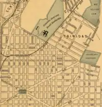 There was also a major effort made to seize the former Graceland Cemetery for use as a public park. In July 1895, the Northeast Citizens Association, an organization of local residents in the area near the cemetery, asked the city to purchase the burying ground and convert it into a public park.[58] Six years later, the citizens' group was still pushing for a park.[59] Movement on a park finally occurred in 1907. H.B. 7354 provided $150,000 to purchase the cemetery for use as a city park. But the city commissioners opposed the plan, arguing that there wasn't enough residential development in the area to justify the move.[60] The bill died at the end of the 59th United States Congress on March 3, 1907. Senator Nathan B. Scott (R-West Virginia) introduced a new bill in the 60th United States Congress.[61] The bill passed the Senate,[62] but died at the end of the 60th Congress on March 3, 1909. The Northeast Citizens Association continued to press for a park in 1909,[63] and Senator Scott introduced a new bill (S.B. 158) in February 1910 in the 61st United States Congress.[64] The Senate approved the bill, which still provided $150,000 for land purchases, in February 1911.[65] But once more, the legislation died when Congress adjourned on March 3, 1911.
