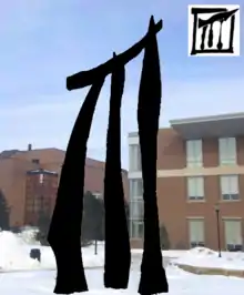 A sculpture entitled "Unity" was installed in the quad between the College of Imaging Arts and Sciences, the College of Applied Science and Technology, and the College of Engineering in 2008.[11] Designed as a collaboration between the RIT faculty members Juan Carlos Caballero-Perez and Leonard Urso,[12] the sculpture is visually similar to the logo used by GDT from 2000 to 2005[13] and has led to speculation that it was inspired by GDT.[14]