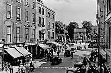 Throughout the 19th century, Grafton Street became increasingly dilapidated. By 1849, several buildings had broken windows that were patched up with paper.[10] In 1862, the Dublin Builder said the street "abounds in old premises in need of doctoring up."[8] During the late 19th century, a number of retail properties were built and several long standing businesses established their presence on the street, such as the department stores Switzer's and Brown Thomas. The jewellers Weirs opened in 1869.[11]
