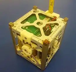 A PhoneSat-1.0 satellite, Graham was built to the single-unit (1U) CubeSat specification, and measures 10 centimetres (3.9 in) in each dimension. The satellite is based on an off-the-shelf HTC Nexus One smartphone which serves in place of an onboard computer and avionics system. Unlike the more advanced PhoneSat-2.0 spacecraft, Graham is powered by non-rechargeable batteries, and has no attitude control system, however onboard sensors can be used to determine and monitor the satellite's attitude.[2] The cameras built into the phones aboard Graham and its sister satellite Bell was used to return images of the Earth from space.[3]
