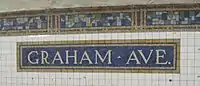 The Graham Avenue station is a station on the BMT Canarsie Line of the New York City Subway. Located at the intersection of Graham and Metropolitan Avenues in Williamsburg, Brooklyn, it is served by the L train at all times.