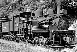 The Graham County Railroad was a logging railroad chartered in 1905 to connect Robbinsville, North Carolina, to the Southern Railway at Topton, North Carolina. Soon after the tracks were starting to be laid, the railroad purchased a used steam locomotive in need of repairs. The railroad sent the locomotive to Asheville, North Carolina, for repairs, but a flood hit the area and the locomotive was washed away and never found. The flood also washed away much of the existing track, halting all progress on the line. Then in 1925, the railroad finally became operational. Sometime in the 1960s, Shay #1926 lost its original number plate and it inherited the number plate from a scrapped narrow gauge Shay locomotive (serial number 3229).[2] The railroad began doing excursions in 1966 with shay #1926 while #1925 handled the freight traffic. In 1967, the Bemis Lumber Company mill burned to the ground and when it was rebuilt, the mill began using trucks. The railroad continued on with local freight. By this point, the railroad's track was in poor condition which caused a derailment at least every 3 days.