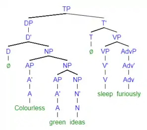 Tree structure of the sentence "Colourless green ideas sleep furiously."