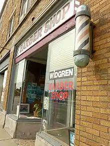 The barber shop, Widgren's Barber Shop, is along 11 Mile Road,[8] near Center Street, in Royal Oak. The shop, founded in 1938, in a space now occupied by another business, moved to its current location, west of its original location, in 1970. The film producers selected that shop out of 60 candidates in Metro Detroit. According to Frank Mills, the son-in-law of owner Ted Widgren, the producers selected it because they liked "the antique look inside."[24] Eastwood asked Widgren to act as an extra in the barber shop scene. In the area around the barbershop, vehicle traffic had to be stopped for three to five minutes at a time, so traffic in the area slowed down.[24]