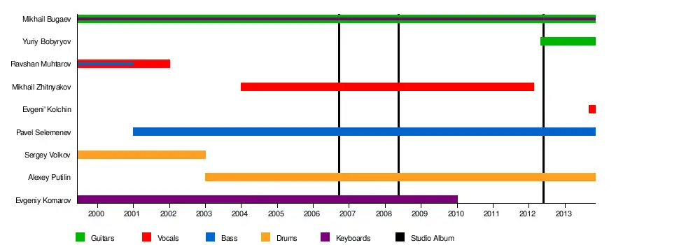 - Mikhail Bugaev – guitar, keyboards, bandleader, songwriter (1999–present)