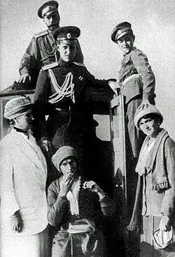 At his arrival in Persia, he was welcomed by his officers as his reputation for the Rasputin assassination had made him popular.[23] He served ten weeks under General Nikolai Baratov who headed the 1st Caucasus Cossack Corps on the Caucasus Front in the Persian city of Kazvin.[25] Within two months Nicholas II was forced to abdicate ending the rule of the Romanov dynasty. General Baratov asked Dmitri to leave since there were rumblings from the lower ranks, and his safety could not be guaranteed. Ronald Wingate entertained Grand Duke Dmitri Pavlovich when he passed through Najaf. The Provisional Government invited him to return to Russia, but he declined.[22] Lacking both friends and money, he lived precariously. In the summer of 1917, Dmitri left the Russian occupation zone moving to Tehran.[26] Dmitri stayed briefly with General Meidel (ru), then the head of the Persian Cossack Division, before being taken in by the British Minister to Tehran, Sir Charles Murray Marling, and his wife, Lucia. Through 1917 and most of 1918 Grand Duke Dmitri lived with the Marlings.[27]