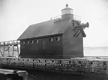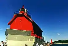 Grand Haven South Pierhead Entrance Light is the outer light of two lighthouses on the south pier of Grand Haven, Michigan where the Grand River enters Lake Michigan. A lighthouse was first lit there in 1839.[3] The lighthouse was put up for sale in 2009 under the National Historic Lighthouse Preservation Act.[4] The City of Grand Haven now owns the pier, but it is maintained by the Army Corps of Engineers.[5]