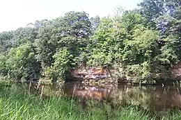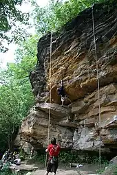 Oak Park in Grand Ledge is one of the few places to climb in Michigan, making it a popular destination for local climbers. The sandstone cliffs along the river have nearly 100 routes ranging from basic (5.2) to very difficult (5.13).[8]