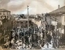 Another industry which drove the chartering of new lodges in New Mexico was mining. Several lodges were founded in the Territory, and later the State, shoulder to shoulder with operations and towns as the mineral-rich area was parceled out for mining. Silver City Lodge No.8 (chartered as No.465 by the Grand Lodge of Missouri), took its name from the mining town in which it was built in 1873.[16] Other lodges were later chartered in the same area as mining boomed, including Mimbres No.10, which was tied to silver mining at Georgetown.[17] Hurley, New Mexico was founded as a town to house and serve the workers of the open pit copper mine started by the Chino Copper Mine Company at Santa Rita in 1910,[18] and Hurley Lodge No. 55 was started as a "Masonic Club" in 1911, receiving its charter in 1919.[19] Not far away to the northeast of the lodges around Silver City, Kingston Lodge No.16 was founded in 1889 in Kingston, NM, but soon moved east to Hillsboro as the mines declined in the area of the original location, and the population moved to live near new ones opened about 10 miles away.[20]