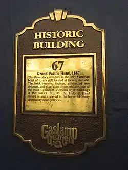 The Grand Pacific Hotel is an historic structure located at 366 5th Avenue in San Diego's Gaslamp Quarter, in the U.S. state of California. It was built in 1887.
