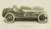 The road circuit was badly cut out and covered with large sharp stones one of which knocked Segrave's riding mechanic Jules Moriceau unconscious for the whole of half a lap.[84] The race was to be plagued by tyre problems for S.T.D. as a result of both road condition and insufficiently cured tyre rubber[85] Despite having to change fourteen covers by himself through sheer determination[86] H.O.D. Segrave was still able to average 62.6 mph, finishing in 5:08:06.0 and achieving ninth place.[82] This performance convinced Coatalen to offer Segrave a position in the Sunbeam Works team,[87] which soon took him to extraordinary fame, success and knighthood.