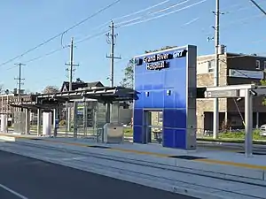 Grand River Hospital is a stop on the Region of Waterloo's Ion rapid transit system.[1] It is located in the median of King Street in Kitchener, between Pine and Mount Hope Streets, just north of its namesake, the KW Site of Grand River Hospital. It opened in 2019.