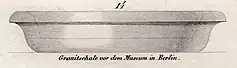 Initially commissioned by Prussian King Frederick William III, the granite bowl was placed in the museum's rotunda. Since it proved to be larger than originally planned, it was eventually installed in front of the museum. The bowl, which the artist Johann Erdmann Hummel represented in a number of sketches and paintings, was not only regarded as a technical marvel at the time but also as a "patriotic symbol," "cult stone," and "myth."[1]