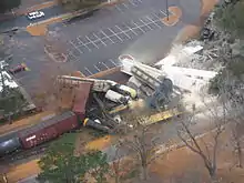 The Graniteville train crash was an American rail disaster that occurred on January 6, 2005, in Graniteville, South Carolina. At roughly 2:40 am EST, two Norfolk Southern trains collided near the Avondale Mills plant in Graniteville.[1] Nine people were killed and over 250 people were treated for toxic chlorine exposure. The accident was determined to be caused by a misaligned railroad switch.[2]