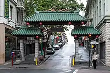 Today, the intersection of Grant Avenue and Bush Street marks the southern entrance to Chinatown. Grant Avenue is still written and said in Chinese as "Du Pon Gai" (都板街, Gai 街 means street).[4]