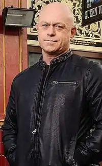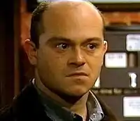Grant Mitchell is a fictional character from the British soap opera EastEnders, played by Ross Kemp. He was introduced by producer Michael Ferguson to revamp the show, and originally served as one of the show's leading protagonists throughout the 1990s; with the character first appearing in 22 February 1990 and then departing on 25 October 1999 after Kemp had opted to leave the show. He then returned to the show on 24 October 2005 for a few weeks and returned again between March and June 2006. Kemp was persuaded to return to the role for brief stints during a period of heavy media criticism aimed at EastEnders. The return proved to be a ratings success. Kemp reprised the role of Grant for various guest stints in 2016, appearing in twelve episodes between 13 May and 9 September. An archived recording of his voice was heard on 25 January 2022.[1] On 26 July 2022, it was announced that Grant would feature in a flashback episode focusing on the Mitchell family in 1979.[2] Teddy Jay played the role of Grant for this special episode, which aired on 5 September 2022.[3]