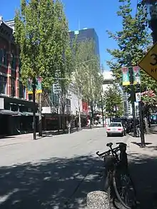 The Granville Mall is a transit mall and pedestrian zone in Vancouver, British Columbia, Canada. It comprises the section of Granville Street in Downtown Vancouver between Hastings and Smithe streets. Most routes that service the mall are primarily trolleybuses operated by TransLink;[1] in addition to bus service, the Granville Mall can be accessed by SkyTrain from either Granville and Vancouver City Centre stations of the Expo and Canada lines, respectively.
