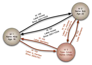 Oracle Property Graph; part of Oracle Database21c2020Proprietary; Open Source language specificationPGQL, Java, PythonProperty Graph; consisting of a set of objects or vertices, and a set of arrows or edges connecting the objects. Vertices and edges can have multiple properties, which are represented as key–value pairs. Includes PGQL, an SQL-like graph query language and an in-memory analytic engine (PGX) nearly 60 prebuilt parallel graph algorithms. Includes REST APIs and graph visualization.