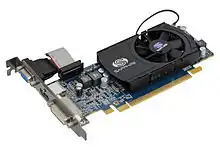 As of 2016, the primary suppliers of the GPUs (graphics chips or chipsets) used in graphics cards are AMD and Nvidia. In the third quarter of 2013, AMD had a 35.5% market share while Nvidia had 64.5%,[38] according to Jon Peddie Research. In economics, this industry structure is termed a duopoly. AMD and Nvidia also build and sell graphics cards, which are termed graphics add-in-boards (AIBs) in the industry. (See Comparison of Nvidia graphics processing units and Comparison of AMD graphics processing units.) In addition to marketing their own graphics cards, AMD and Nvidia sell their GPUs to authorized AIB suppliers, which AMD and Nvidia refer to as "partners".[7] The fact that Nvidia and AMD compete directly with their customer/partners complicates relationships in the industry. AMD and Intel being direct competitors in the CPU industry is also noteworthy, since AMD-based graphics cards may be used in computers with Intel CPUs. Intel's integrated graphics may weaken AMD, in which the latter derives a significant portion of its revenue from its APUs. As of the second quarter of 2013, there were 52 AIB suppliers.[7] These AIB suppliers may market graphics cards under their own brands, produce graphics cards for private label brands, or produce graphics cards for computer manufacturers. Some AIB suppliers such as MSI build both AMD-based and Nvidia-based graphics cards. Others, such as EVGA, build only Nvidia-based graphics cards, while XFX, now builds only AMD-based graphics cards. Several AIB suppliers are also motherboard suppliers. Most of the largest AIB suppliers are based in Taiwan and they include ASUS, MSI, GIGABYTE, and Palit. Hong Kongbased AIB manufacturers include Sapphire and Zotac. Sapphire and Zotac also sell graphics cards exclusively for AMD and Nvidia GPUs respectively.[39] The United States is also home to EVGA, and XFX which sell graphics cards exclusively for Nvidia and AMD respectively.