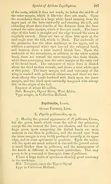 - Holland, W.J. 1892 Descriptions of some new species of African Lepidoptera. Annals and Magazine of Natural History (6) 10: 284-295.
