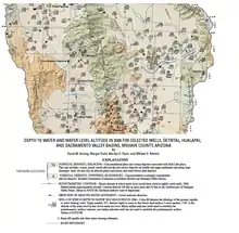- Anning, David W. (2007). Depth to water and water-level altitude in 2006 for selected wells, Detrital, Hualapai, and Sacramento Valley Basins, Mohave County, Arizona—Plate 1 (PDF) (Map). 1:100,000. Cartography by Universal Transverse Mercator. United States Geological Survey. Retrieved 2008-12-22.