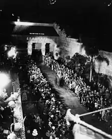 The Egyptian was the location for the first-ever Hollywood premiere, Robin Hood, starring Douglas Fairbanks, on Wednesday, October 18, 1922. As the film reportedly cost over $1 million to produce, the admission price to the premiere was $5. One could reserve a seat up to two weeks in advance for the daily performances. Evening admission was 75¢, $1 or $1.50. The film was not shown in any other Los Angeles theater during that year. The theater also premiered Cecil B. DeMille's 1923 film The Ten Commandments.[9]