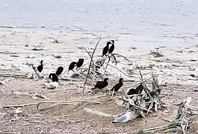 The refuge is home for to a wide array of bird species that either use the islands as nesting grounds or as a place of shelter. The great black-backed gull (Larus marinus) is known to have a small breeding colony on Gravel Island, and historically on Spider Island. In 1994 the species was discovered on Spider Island, making it the westernmost breeding on record at the time.[9] Large colonies of herring gulls (Larus smithsonianus) and double-crested cormorants (Phalacrocorax auritus) are found on both islands, while a colony of Caspian terns (Sterna caspia) can be found on Gravel Island.[1] Scattered populations of waterfowl nest on Spider Island; these include the Canada goose (Branta canadensis), American black duck (Anas rubripes) and mallard (Anas platyrhynchos).[1]