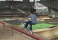 Gravity Games Bike is a BMX video game and features gameplay similar to that of the Dave Mirra Freestyle BMX games. It features 21 characters and 10 levels.[2] The player controls a BMX biker and is required to complete various goals within levels to unlock later courses.[3] As the player performs tricks, they gain more points and fulfill requirements in the game. The control scheme is similar to that of the Dave Mirra games in that one button on the controller is used to perform tricks and another is used to modify the trick once it is performed.[3] Unlike other similar games, Gravity Games Bike rewards the same number of points for performing the same trick repeatedly.[3] The game has several different multiplayer modes.[4]