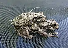 It is sometimes referred to as the eastern gray treefrog, northern gray treefrog,[3] common gray treefrog, or tetraploid gray treefrog to distinguish it from its more southern, genetically disparate relative, Cope's gray treefrog.