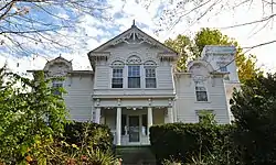 Grayson–Gravely House is a historic home located near Graysontown, Montgomery County, Virginia. The house was built in 1891, and is a two-story, three-bay, frame Victorian dwelling with a central passage plan. It has a standing seam metal gable roof. It has a three-bay porch supported by Doric order columns and a three-stage tower with rooms on the first and third floors and a porch on the second, The porches feature a number of decorative elements including elaborate sawn balusters, a frieze with brackets, dentils, and tablets.[3]