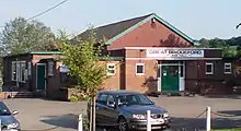 The village was served by two successive railway stations, the first from 1837 to 1840[1] and the second from 1876 until closing in 1959.[2] The railway line at Great Bridgeford was the scene of a major accident and derailment on the evening of 6 June 1932. Four people died and many others were injured in this accident.[3] A picture of the rail locomotive lying on its side in the aftermath of the accident can be seen here:[4]