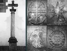 The Great Cross of Hendaye (French: Croix d'Hendaye) is a stone cross located on the town square of Hendaye, in the Pyrénées-Atlantiques, in southwestern France. The cross includes references to apocalyptic beliefs about Christianity, Rosicrucianism, and alchemy. Many, including devotees of Nostradamus, the Bible Code, and especially the 2012 phenomenon, believed that a great comet would pass by, or crash into the earth in the year 2012, and interpreted the Cross of Hendaye as another reminder that 2012 would be the end.[1]