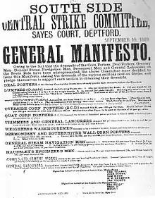 The London dock strike was an industrial dispute involving dock workers in the Port of London. It broke out on 14 August 1889, and resulted in victory for the 100,000 strikers and established strong trade unions amongst London dockers, one of which became the nationally important Dock, Wharf, Riverside and General Labourers' Union. The strike is widely considered a milestone in the development of the British labour movement, symbolising the growth of the New Unions of casual, unskilled and poorly paid workers, in contrast to the craft unions already in existence. The strike helped to draw attention to the problem of poverty in Victorian Britain and the dockers' cause attracted considerable public sympathy.