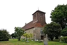 The parish church of St John & St Giles owned by Rose Toynbee of Bridge Foot house is a Grade II* listed building.[5] It is Norman in design and was built on the site of an earlier Saxon church. It contains Roman bricks, along with many of the houses in the village. It has had many alterations, and at one time was cruciform, but the north and south transepts have disappeared, and only thickened walls indicate the position of the crossing tower. By 1460 the tower had disappeared, and the three bells that were in use were housed in a timber cupola over the west end of the nave. But this was demolished in 1899 during a major refurbishment, and a large timber tower was built, far taller than the current low brick tower installed in 1928. It was struck by lightning, and its ancient timber was installed into many of the old Tudor houses, including the 'King Post' of the tower installed into Essex House, with a plaque reading 'KING POST of Old Wooden Tower, GREAT EASTON CHURCH, erected 1777, Demolished 1928.' This makes the post at least 235 years old, but this is only half as old as most of the houses surrounding the church.