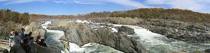 Great Falls Park is a small National Park Service (NPS) site in Virginia, United States. Situated on 800 acres (3.2 km2) along the banks of the Potomac River in northern Fairfax County, the park is a disconnected but integral part of the George Washington Memorial Parkway.[1] The Great Falls of the Potomac River are near the northern boundary of the park, as are the remains of the Patowmack Canal, the first canal in the United States that used locks to raise and lower boats.