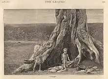 The excessive mortality and the renewed questions of "relief and protection" asked in its wake, led directly to the constituting of the Famine Commission of 1880 and to the eventual adoption of the Indian Famine Codes.[16] After the famine, a large number of agricultural labourers and handloom weavers in South India emigrated to British tropical colonies to work as indentured labourers in plantations.[18] The excessive mortality in the famine also neutralized the natural population growth in the Bombay and Madras presidencies during the decade between the first and second censuses of British India in 1871 and 1881 respectively.[19] The famine lives on in the Tamil and other literary traditions.[20] A large number of Kummi folk songs describing this famine have been documented.[21]