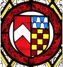 He married Elizabeth[34][35] (or Jennet[15]) Bosome, daughter and heiress of John Bosome (alias Bosom, Bozun, Bosum, etc.) of Bosom's Hele (alias Bozunsele, etc., modern: "Bozomzeal"[36]), in the parish of Dittisham, near Dartmouth, Devon,[35] by his wife Johane Fortescue.[34] Elizabeth Bozom survived her husband and married secondly to Sir William Huddesfield (died 1499), of Shillingford St. George, Devon, Attorney General to King Edward IV (1461–1483). Huddesfield married secondly (as her third husband) to Katherine Courtenay, a daughter of Sir Philip Courtenay (died 1463) of Powderham, Devon. A monumental brass of Huddesfield and his second wife Katherine Courtenay survives in Shillingford St George Church,[37] and the arms of Bosome (Azure, three bird bolts in pale points downward or) survive in a stained glass window in the same church.[38] By Jennet Bosome, heiress of Bozum's Hele,[39] he had children two sons and two daughters, namely Thomasine Fulford, who married John Wise of Sydenham House, from whom was descended John Russell, 1st Earl of Bedford (c. 1485 – 1555), the most powerful magnate in Devon, and another daughter Alice Fulford, who married Sir William Cary of Cockington, from whom was descended Lord Hunsdon and the Earls of Monmouth and Dover.[40] His younger son was John Fulford (died 1518), a Canon of Exeter Cathedral and Archdeacon successively of Totnes, Cornwall and Exeter, whose large black marble ledger stone survives in Exeter Cathedral, behind the high altar[15] (or in the eastern aisle), inscribed as follows in Gothic letters: Hic jacet magist(er) Joannes Fulford filius Baldwini Fulford milit(i), hui(us) eccle(siae) Resid. pr. Archid. Tottn. deinde Cornub(iae)' ult. Exon, q(ui) obiit xix die Januarii A(nno) D(omini) xv.xviii cui(us) a(n)i(ma)e p(ro)pitietur Deus ("Here lies Master John Fulford, son of Sir Baldwin Fulford, Knight, residentiary of this church, first Archdeacon of Totnes, then of Cornwall, and lastly of Exeter, who died on the ninth day of January in the year of our Lord 1518, on whose soul may God look with favour").[41]