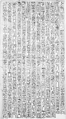 The Great Hymn to the Aten is the longest of a number of hymn-poems written to the sun-disk deity Aten. Composed in the middle of the 14th century BC, it is varyingly attributed to the 18th Dynasty Pharaoh Akhenaten or his courtiers, depending on the version, who radically changed traditional forms of Egyptian religion by replacing them with Atenism.[1] The hymn bears a notable resemblance to the biblical Psalm 104.[2]