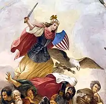 The arms as held by Columbia in the war scene of the United States Capitol's 1865 Apotheosis of Washington