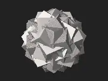 In geometry, the great snub icosidodecahedron is a nonconvex uniform polyhedron, indexed as U57. It has 92 faces (80 triangles and 12 pentagrams), 150 edges, and 60 vertices.[1] It can be represented by a Schläfli symbol sr{5⁄2,3}, and Coxeter-Dynkin diagram ![]()