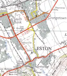 It is mainly an area which was formerly covered by the Eston Urban District until 1968, it did not include Ormesby which was in a parish of the Stokesley Rural District.[4] The former district's application for a town charter was declined twice.