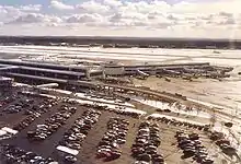 After the 1963 expansion gave it its final layout, the terminal had ten gates in two concourses. A small three-gate concourse at the east end served American Airlines, and a longer, angled concourse at the west end served Mohawk Airlines (four gates on the east side) and United Airlines (three gates on the west side).