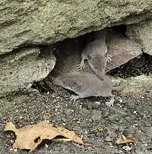 The greater white-toothed shrew (Crocidura russula) is a small insectivorous mammal[3] found in Europe and North Africa. It is the most common of the white-toothed shrews. This species is found along the Mediterranean, Netherlands, Belgium, Ireland, Germany and Portugal;[4] in addition, the Osorio shrew of the Canary island of Gran Canaria, originally described as a separate species (Crocidura osorio), was later discovered to be a population of introduced greater white-toothed shrew.[5] Furthermore, a subspecies of the greater white-toothed shrew, Crocidura russula ibicensis, is found on the Mediterranean island of Ibiza.[6] In April 2008, the greater white-toothed shrew was discovered in Ireland as well. Its preferred habitats are grassland and woodland. It is slightly larger than the lesser white-toothed shrew but otherwise very similar and can often be distinguished only by close inspection of its teeth which are unpigmented.[7]