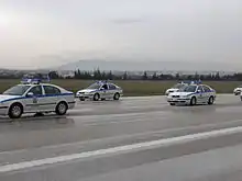 The Hellenic Police (Greek: Ελληνική Αστυνομία, Ellinikí Astynomía, abbreviated ΕΛ.ΑΣ.) is the national police service and one of the three security forces of the Hellenic Republic. It is a large agency with responsibilities ranging from road traffic control to counter-terrorism. Police Lieutenant General Lazaros Mavropoulos[1][2] currently serves as Chief of the Hellenic Police. He replaced Konstantinos Skoumas.[3] The Hellenic Police force was established in 1984 under Law 1481/1-10-1984 (Government Gazette 152/A/8-10-1984) as the result of the fusion of the Gendarmerie (Χωροφυλακή, Chorofylakí, 1833-1984) and the Cities Police (Αστυνομία Πόλεων, Astynomía Póleon, 1921-1984) forces.[4]