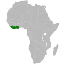 The green-tailed bristlebill (Bleda eximius) is a species of songbird in the bulbul family, Pycnonotidae. It is found in West Africa from Sierra Leone to Ghana. Its natural habitat is tropical moist lowland forests. It is threatened by habitat loss. The green-tailed bristlebill was originally described in the genus Trichophorus (a synonym for Criniger).[2] Formerly, some authorities considered the yellow-lored bristlebill as conspecific with the green-tailed bristlebill.