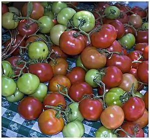 A display of fresh tomatoes at Chicago's Green City Market