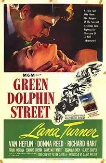 Green Dolphin Street is a 1947 historical drama disaster film starring Lana Turner, Van Heflin, and Donna Reed, directed by Victor Saville, and produced by Carey Wilson. Based on the 1944 novel Green Dolphin Street by Elizabeth Goudge, it was released by Metro-Goldwyn-Mayer.