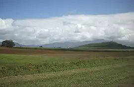 Green Hill is in the south-west of the locality (17.0401°S 145.8086°E) at 131 metres (430 ft) above sea level.[3][6] The hill is the remnant of a volcano that erupted about 986,000 years ago. It is believed that the volcano's eruption altered the course of the Mulgrave River so that instead of having its mouth on Trinity Inlet, the mouth become directly onto the Coral Sea some 40 km further south.[7] However, further research has shown river sediments above the basalt flows and it is now believed that other factors such as alluvial sediments may have altered the river's course and that perhaps it has alternated between the two mouths over time.[8]